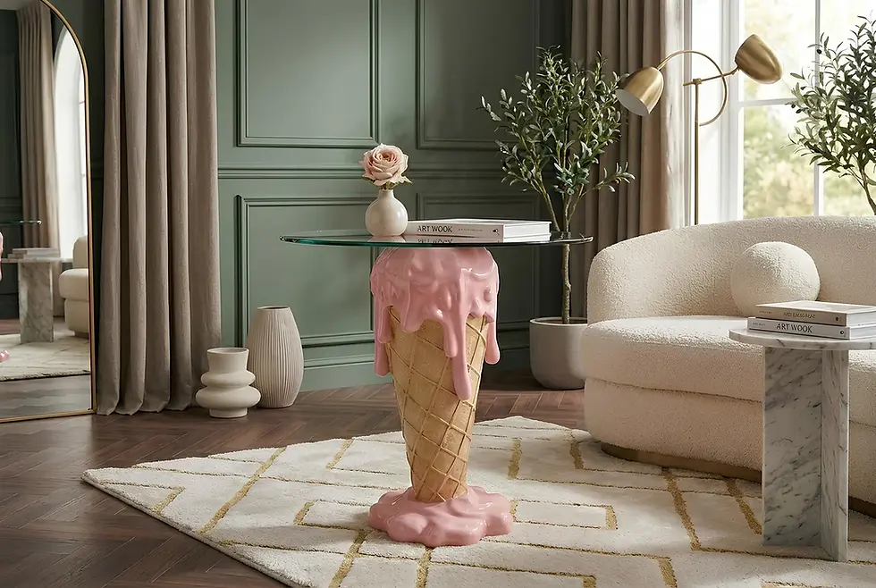 TABLE BASSE ICE CREAM 50CM AVEC VERRE TREMPÉ ROSE BEIGE